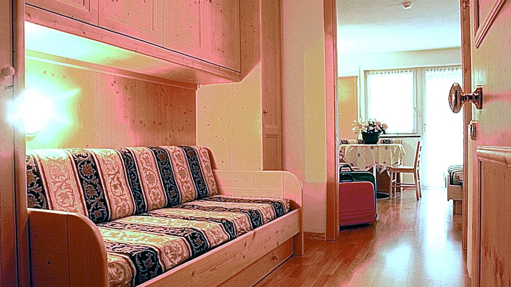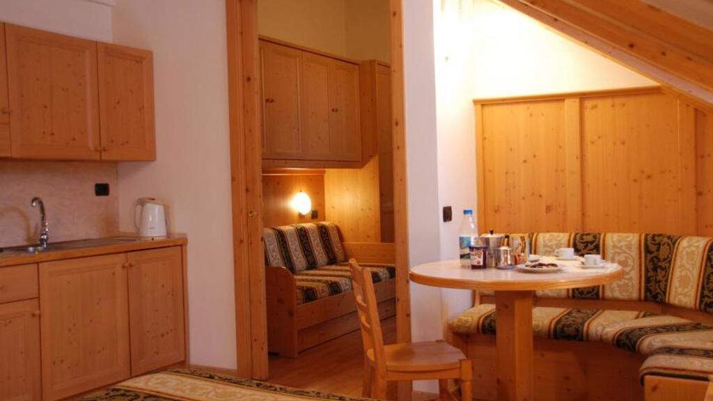 v nadmořské výšce 1 500 m, Canazei cca 2 km, obchody, bary a restaurace cca 800 m.