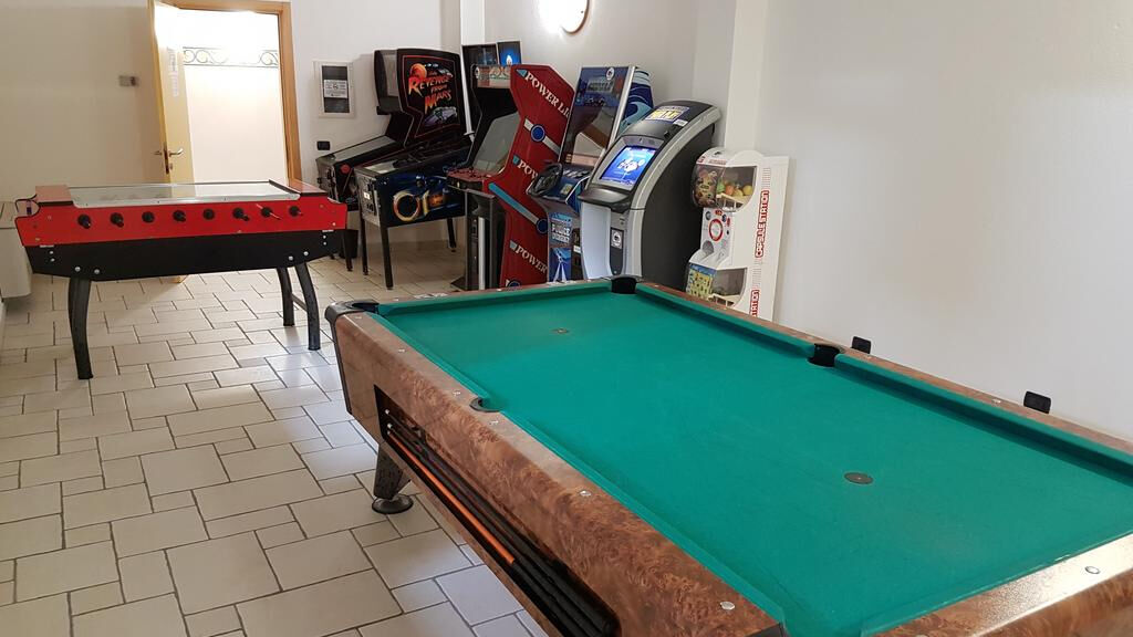 dětská herna, videohry (za poplatek). Dětská postýlka do 2 let cca 70 €/týden (rezervace v CK).