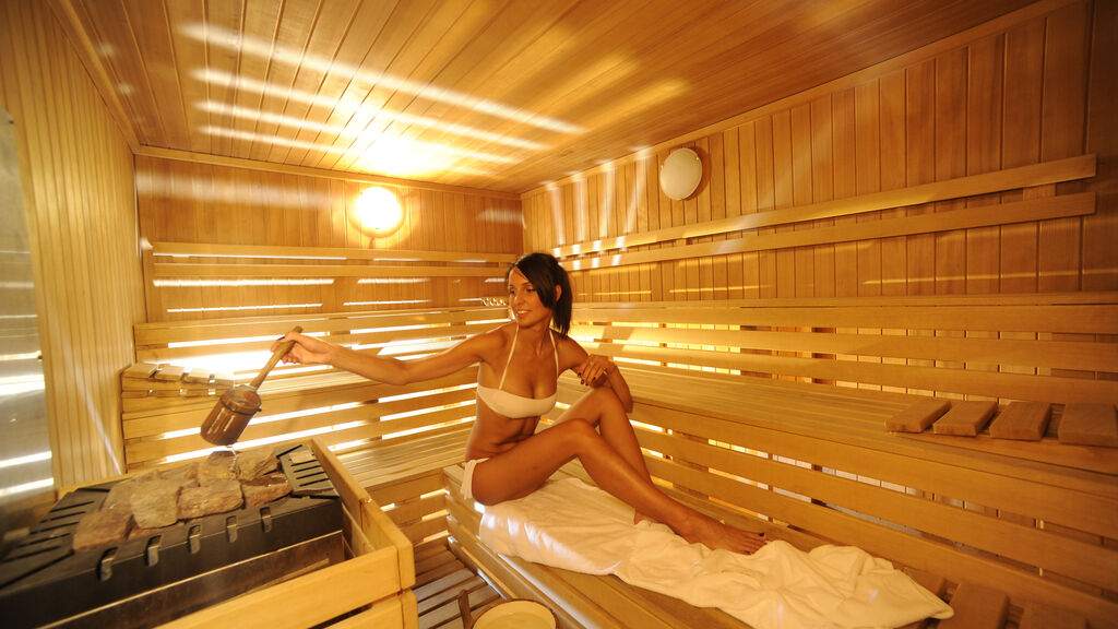 bazén 15 x 6 m s lehátky, vířivka# až pro 6 osob, 2x sauna#, pára#, relaxační koutek# s lehátky, posilovna#, biliár*, stolní tenis, stolní fotbal*; služby označené # mohou využívat jen osoby od 16 let