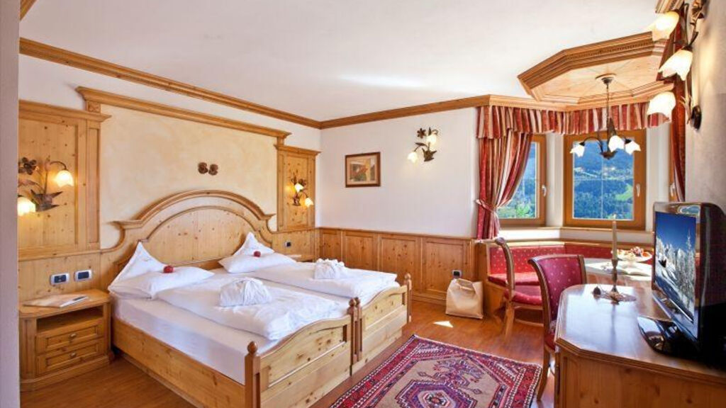 Špičkový hotel s výhledem do údolí leží nad městečkem Cavalese. Hotel nabízí vysoce komfortní ubytování a možnost relaxace v prostorném wellness centru.Vybavení a služby:recepce, bar, restaurace, společenská místnost s TV, internet point, společenská místnost, taverna, konferenční místnost, dětský koutek, *velké wellness centrum (bazén, dětský bazének, sauna, turecké lázně, aromatické sauny, Kneippova terapie, relaxační zóny, tropická sprcha, ledová mlha, salón krásy, masáže a posilovna), výtah, lyžárna, parkoviště, garáž* Provoz bazénu, wellness centra, posilovny a jiných služeb tohoto druhu závisí na aktuální vládní či zdravotnické vyhlášce, CK nenese odpovědnost za jejich provoz v době pobytu. Ubytování:pokoje ERICA: pro 2 osoby, 20 m2, terasa, nebo balkon, koupelna se sprchou a výhled na východ, nebo západ, možnost přistýlky pro dítě do 12 let (na vyžádání)pokoje JUNIOR SUITE GENZIANA: pro 2 až 4 osoby, 25 m2, obývací prostor, balkon, koupelna se sprchou a výhled na východ, nebo západ Vzdálenosti:1 km od areálu Alpe Cermis, zastávka skibusu před hotelem, 400 m od centra