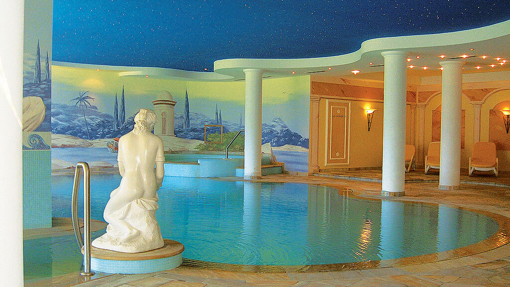 bazén 65 m² s dětským bazénkem, vířivkou až pro 6 osob, protiproudem, umělým vodopádem a lehátky (vstup pro děti do nedovršených 12 let mezi 7.00 až 17.00 hodinou), venkovní vířivka# až pro 8 osob, sauna#, bylinková sauna#, pára#, slaná pára#, fontána# produkující led, 2x multifunkční sprcha#, horizontální solárium*, relaxační koutek# s lehátky, vyhřívanými vodními lůžky a hudbou, Kneippův chodník#, senná lázeň#*, masáže*, lázeňské kúry*, kosmetické služby*, posilovna#; služby označené # mohou využívat jen osoby od 16 let; v rámci relaxačního centra jsou zdarma nabízeny též voda, džusy a bylinkové čaje