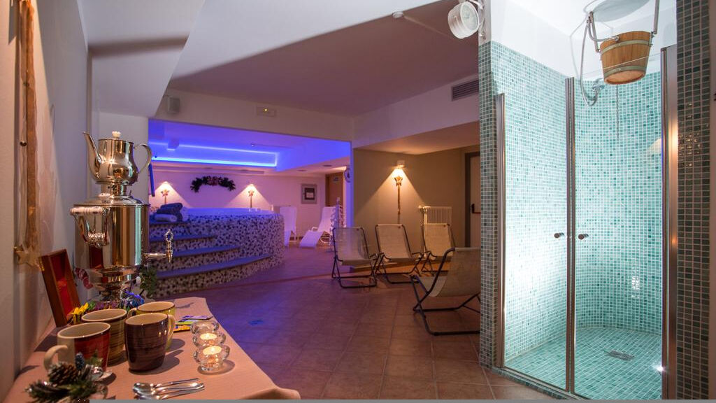 vířivka až pro 4 osoby*#, sauna*#, bio sauna*#, atypická ledová lázeň*#, 2x multifunkční sprcha*#, relaxační koutek s lehátky*#, Kneippův chodník*#, stolní fotbal*; služby označené # nemohou využívat osoby do 15 let; v rámci relaxačního centra jsou zdarma nabízeny též bylinkové čaje a neperlivá voda