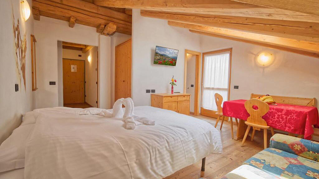 Oblíbená rezidence situovaná na klidném a slunném místě s panoramatickým výhledem v centru vesničky Daiano. Vybavení a služby: recepce, bar, výtah, společenský sál a herna, prádelna, lyžárna, * wellness centrum se saunou, tureckými lázněmi a hydro masážemi, terasa ke slunění, parkoviště a garáž* Provoz bazénu, wellness centra, posilovny a jiných služeb tohoto druhu závisí na aktuální vládní či zdravotnické vyhlášce, CK nenese odpovědnost za jejich provoz v době pobytu.Ubytování: apartmány s vlastním sociálním zařízením, telefon, TV/SAT, sejf, fén, balkonMONO 2/3/4 – obývací pokoj s vyklápěcí manželskou postelí a kuchyňským koutem, v chodbě 1 další lůžko u MONO 3 a patrová postel u MONO 4 BILO 4/5/6 – obývací pokoj s rozkládacím gaučem pro 2 osoby nebo vyklápěcí manželskou postelí, ložnice s palandou, případně ještě se 2 samostatnými lůžky, oddělená kuchyňkaVzdálenosti: v centru vesnice, 3 km od Cavalese, 8 km od Pampeaga, 50 m od zastávky skibusu