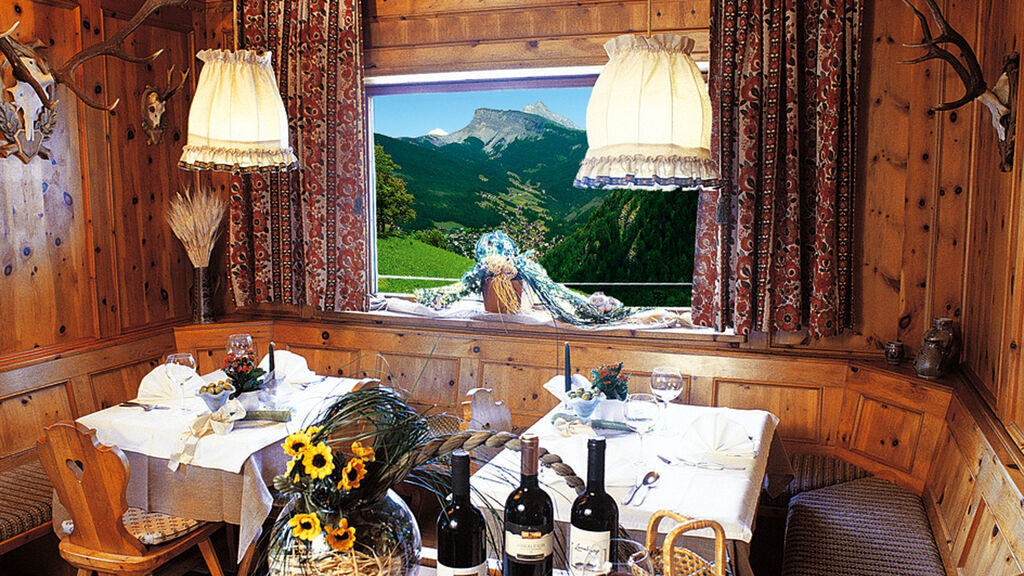 útulný malý hotel s 22 pokoji. Jídelna s tyrolskou jizbou, hostinec, bar a restaurace á-la-carte, wi-fi připojení (za poplatek, 1 den cca 4 €, 3 dny cca 10 €). Terasa na opalování s výhledem na Gröden.