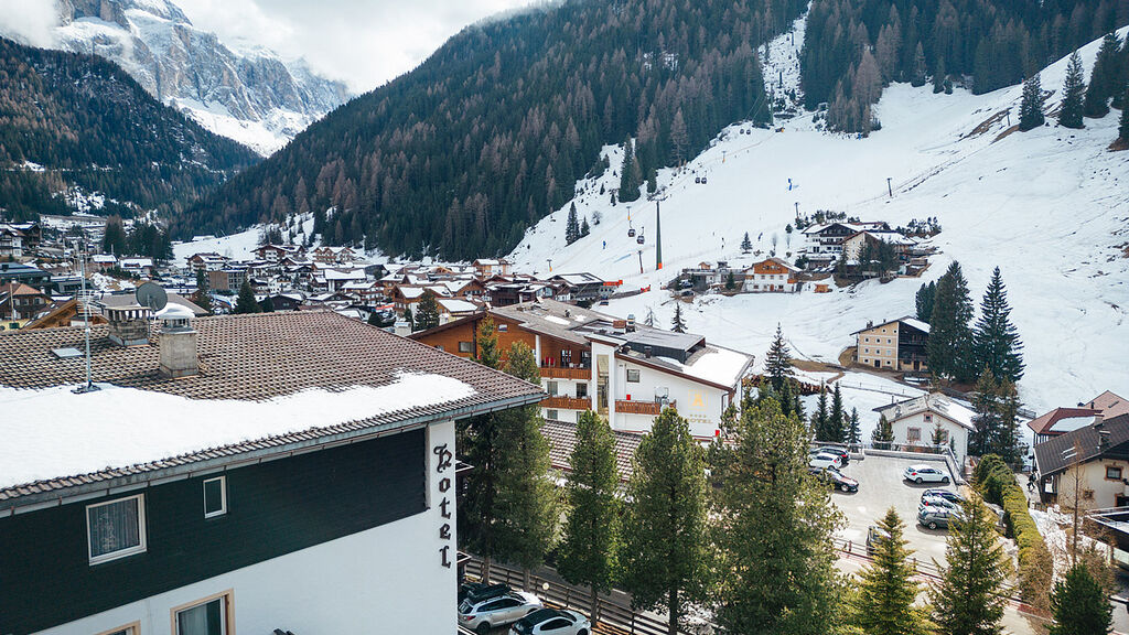 Pěkný 3* hotel je situován v centru města Selva di Val Gardena, jen 150 m od lanovky. K relaxaci můžete využít saunu a vířivku.Vybavení a službyrecepce, jídelna, café bar, společenská místnost s TV, lyžárna, parkoviště (omezený počet míst), sauna, vířivka, solárium (za poplatek)Ubytovánídvoulůžkové pokoje s možností 1 přistýlky, vlastní sociální zařízení, fén, telefon, TV/SAT, sejf, některé pokoje mají balkonVzdálenostiv centru města, 150 m od lanovky Ciampinoi, 150 m od zastávky skibusu