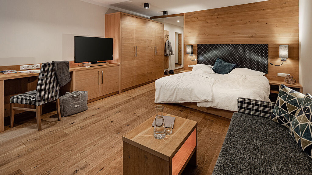 Junior Suite Panorama 2/3/4 - 39 m² - pokoj s manželskou postelí a rozkládacím gaučem až pro 2 osoby, sociální zařízení se sprchou