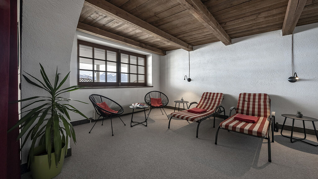 recepce / malá lobby, restaurace s krásným výhledem vyhrazená pro hotelové hosty, sluneční terasa s posezením a lehátky, zahrada s dětským hřištěm, dětský koutek, wi-fi připojení k internetu, úschovna lyží, vyhrazené parkoviště (počat míst omezen)