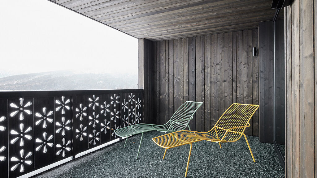 trilo 6 typ D - 67 až 72 m² - 2 ložnice s manželskou postelí či samostatnými lůžky, obývací pokoj s kuchyňským koutem a rozkládacím gaučem pro 2 osoby, 2x sociální zařízení, 1x infrakabina, balkon