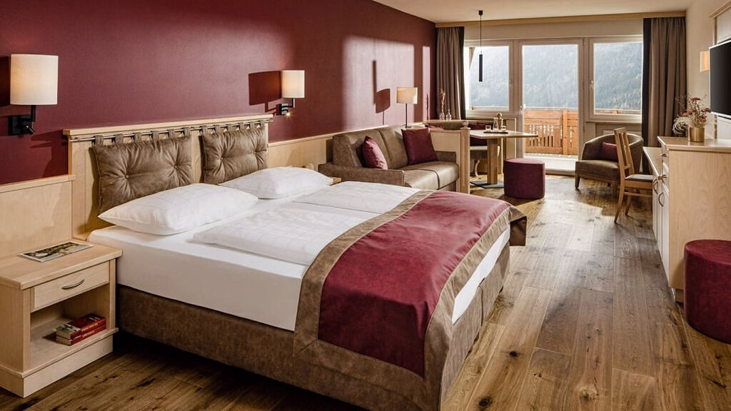 Všechny pokoje jsou moderně zařízeny v typickém alpském stylu a jsou vybaveny TV, trezorem, fénem, telefonem, minibarem a WiFi. V pokojích Romantica a Garden lze obývací část oddělit závěsem.