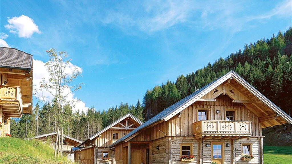 chalet 4 - Jagahütt´l - 60 m² - 2 ložnice s manželskou postelí, obývací pokoj s kuchyňským koutem, kachlová kamna, sociální zařízení se sprchou a vířivou vanou (oddělené WC), předsíň se sušákem bot a oblečení, privátní sauna
