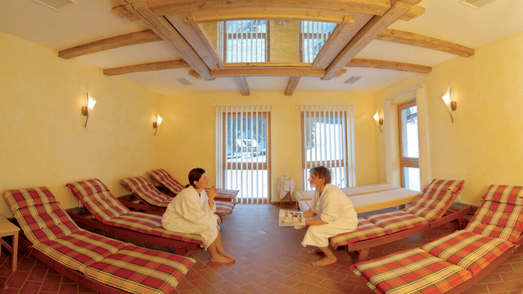Wellness: 120 m² velké wellness nabízí biosaunu, venkovní saunu, parní lázeň, kabinu s infračerveným zářením, zážitkovou sprchu, relaxační místnost.