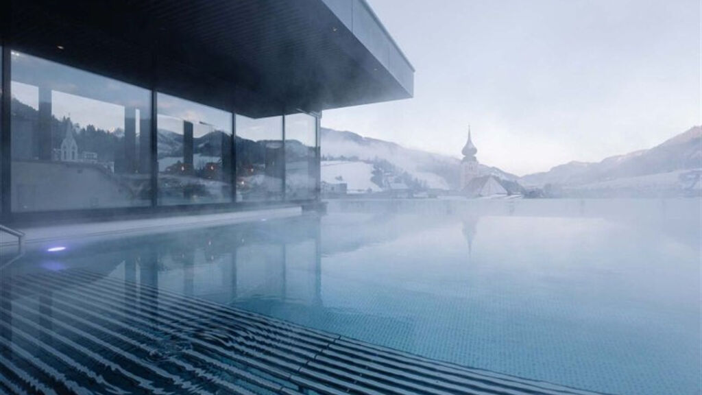 Wellness oáza "enJOyness": odpočívárny a fitness s moderními kardio přístroji (7.30-19.30 h.), sauna, panoramatický bazén (8 x 7 m) na střešní terase s výhledem na Schladming a okolní horský svět (14-19.30 h., změna časů možná). Čajový bar s čajem, džusy, vodou, oříšky a sušeným ovocem. Za poplatek: masáže a kosmetické procedury.