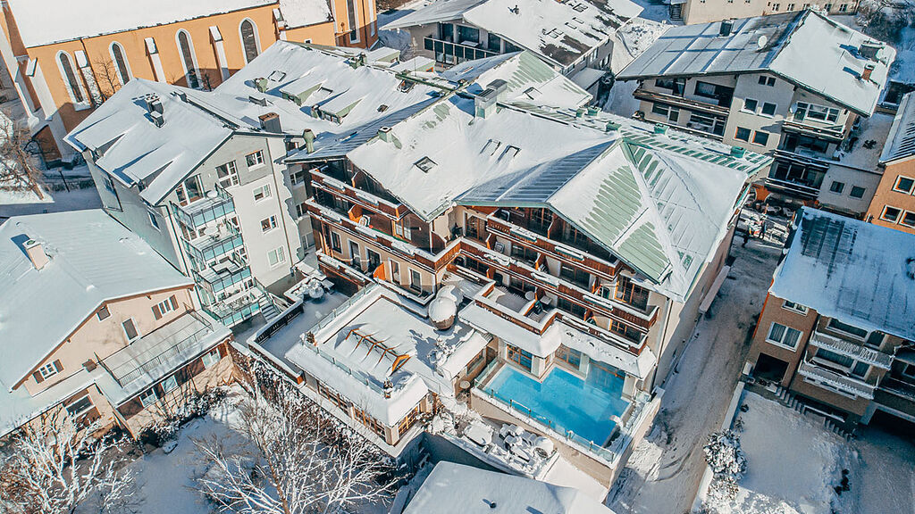 Vkusně zařízený hotel s termálním wellness-areálem přímo v centru obce Bad Hofgastein, leží na pěší zóně v nadmořské výšce asi 860 m. Veřejný krytý bazén Hallenbad Alpentherme 300 m, lyžařská oblast Schlossalmbahn jen 700 m, značené běžecké stopy 500 m, zastávka skibusu před hotelem.
