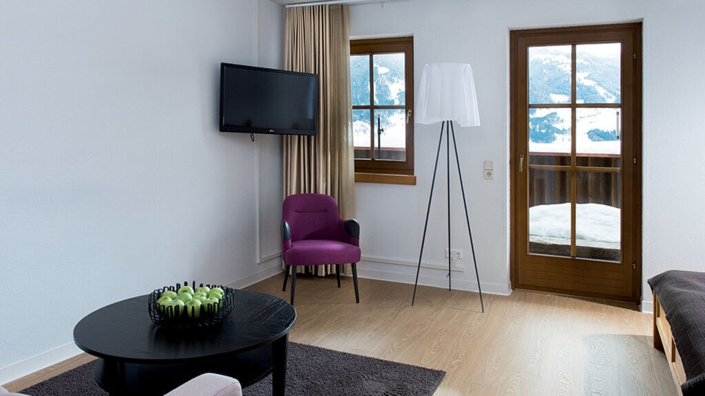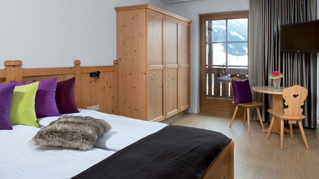 pokoje jsou vybaveny koupelnou, WC, sat. TV, rádiem, telefonem a trezorem.Dvoulůžkové pokoje (A2A): pro 2 osoby.Dvoulůžkové pokoje (A2B): pro 2-4 osoby, prostornější.Apartmány F4F/F6G ve vedlejší budově, cca 200 m od hlavní budovy, jsou vybaveny sprchou a WC, fénem, sat. TV, rádiem, telefonem, krbem (palivo za poplatek), kuchyňkou s troubou, saunou, vestibulem a balkonem.Apartmány (F4F): 2 pokoje, pro 1-4 osoby, cca 45 m2.Apartmány (F6G): 3 pokoje, pro 1-6 osob, cca 55 m2, v jednom z pokojů palanda.Apartmány (F8H): v hotelu Goldried, 4 pokoje, pro 1-8 osob, cca 90 m2, 2 ložnice s palandami, vanou, samostatným WC a pračkou.