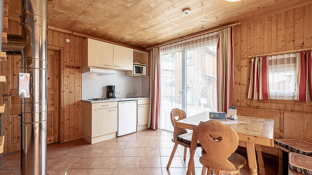 Chalet Troadkasten 3/4 (41 m2) - 41 m² - 1. podlaží apartmánu: obývací pokoj s kuchyňským koutem a ložnicí s palandou, terasa; 2. podlaží apartmánu: 1 ložnice s manželskou postelí či 2 samostatnými lůžky, sociální zařízení se sprchou či vanou