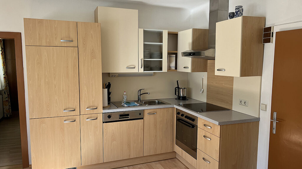 trilo 5 - 55 m² - 1 ložnice s manželskou postelí, 1 ložnice s palandou, obývací pokoj s kuchyňským koutem a rozkládacím gaučem pro 1 osobu, sociální zařízení s vanou, oddělené WC, balkon orientovaný na jih; apartmány jsou celkem dva, oba v 1. patře v hlavní budově