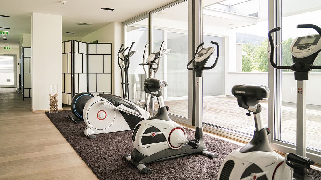 finská sauna, pára, infrakabina, panoramatická terasa / relaxační koutek s lehátky a vodními lůžky, posilovna