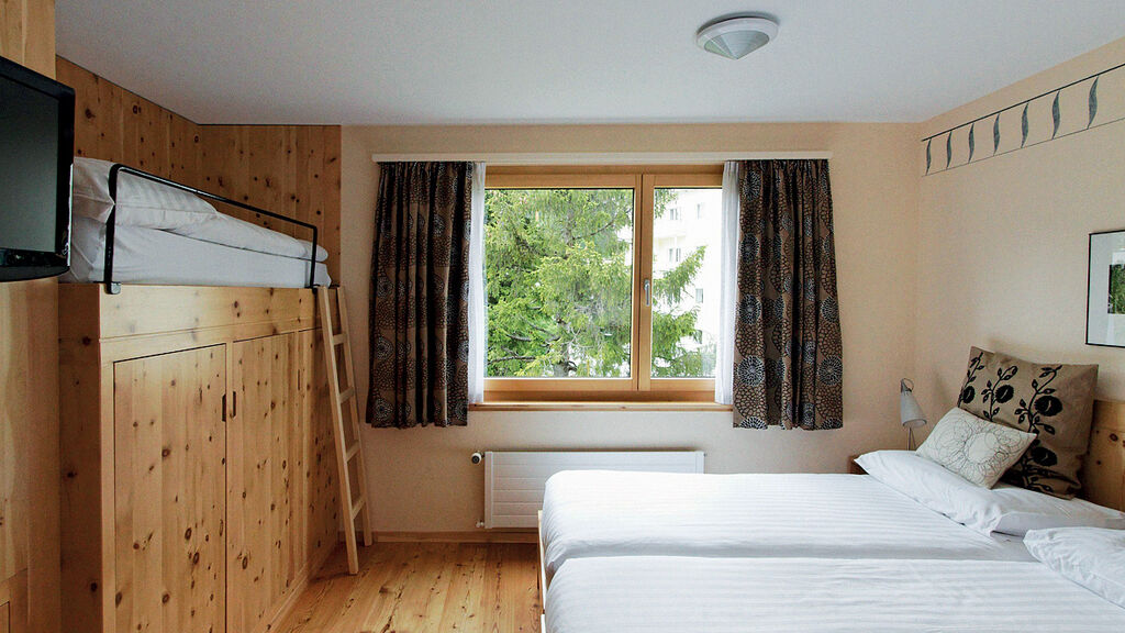 klidná, v nadmořské výšce 1 800 m, ve městě St. Moritz. V blízkosti připojovací lanovky Sankt Moritz Bad. Centrum cca 300 m. Vlakové nádraží cca 1,5 km (transfer z/na nádraží zdarma, rezervace nutná).